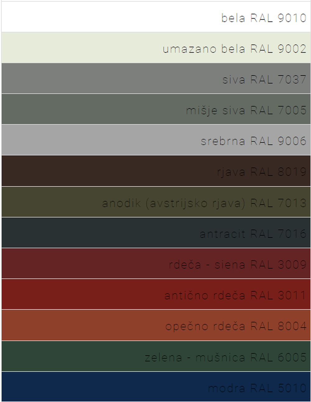 Nudimo vam izbiro več barv pločevine. Izberite svojo, ki bo dopolnila videz vrtne hiške in okolice.